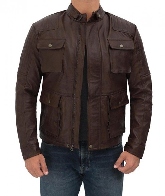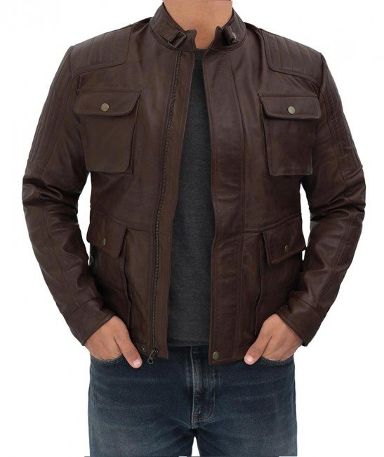 Handmade MARKX Men's Four Pocket Vintage Leather Jacket (Dark Brown)