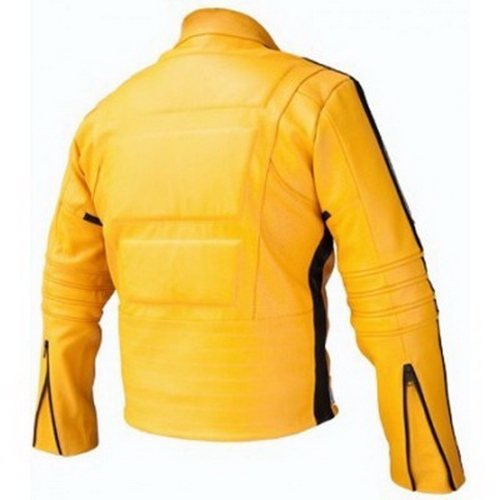 100% genuine leather. Fully lined. Fully Padded. Two pockets inside. Ban Collar. As worn by Uma Thurman in movie Kill Bill.