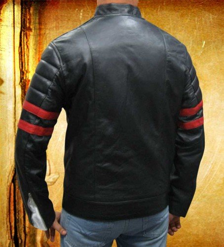 Handmade Men Fight Club Red Stripe Leather Jacket