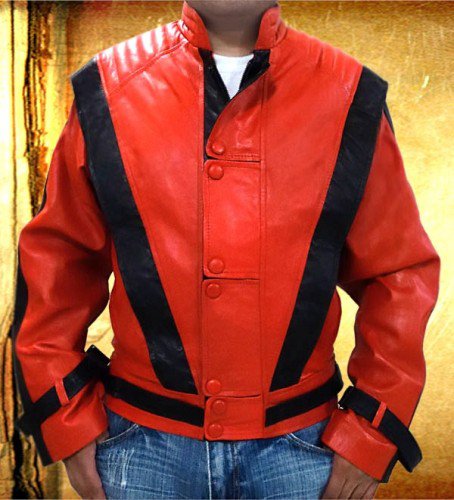 A Michael Jackson fan’s dream come true would be to have the same Michael jackson outfit as he wore in the music video of the epic song Thriller. We at Hollywood Leather Jackets are offering you the exact replica of Michael jackson costume jacket made from finest Lambskin leather. The soft red leather jacket is adorned with again genuine black Lambskin leather strips.