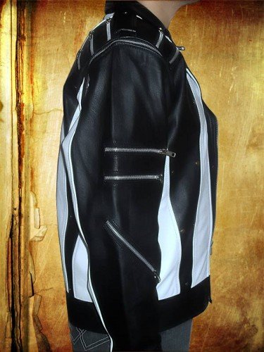 This Michael Jackson Pepsi Jacket is made from Premium soft White and Black Lambskin Leather . It has 2 side zippered pockets and comes with 2 inside pockets, water-resistant coating, YKK brand zippers front, has made it striking for customers. The sleeves also zips off to make into a sleeveless jacket.