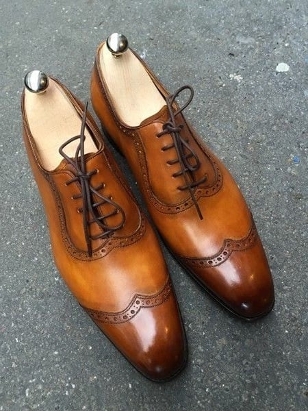 Handmade Men's Two Tone Lace Up Formal Leather Shoes (Brown)