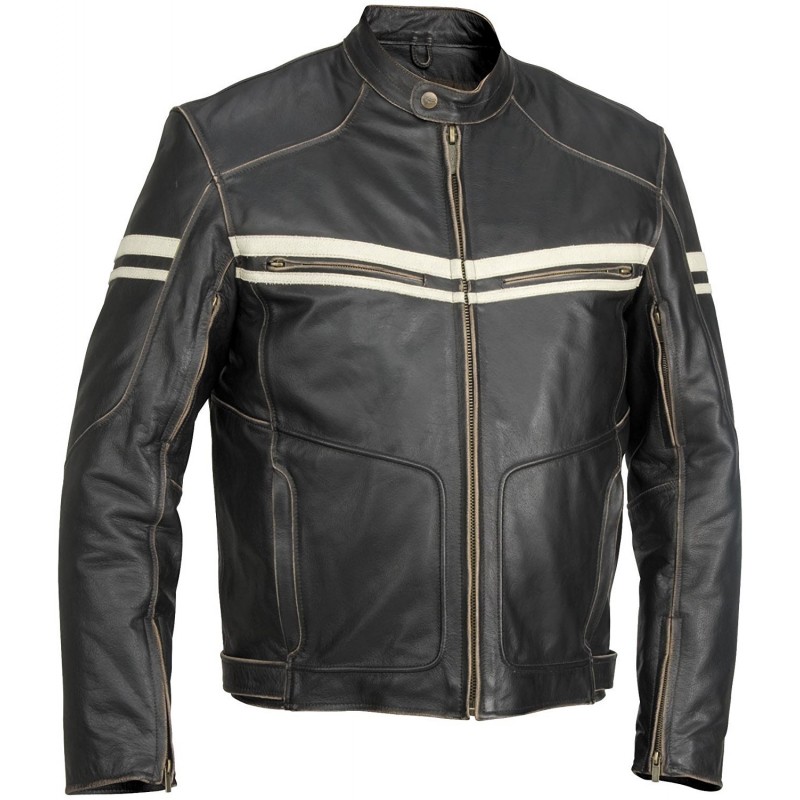 Handmade Men's Black Hoodlum Vintage Biker Leather Jacket with White Stripes