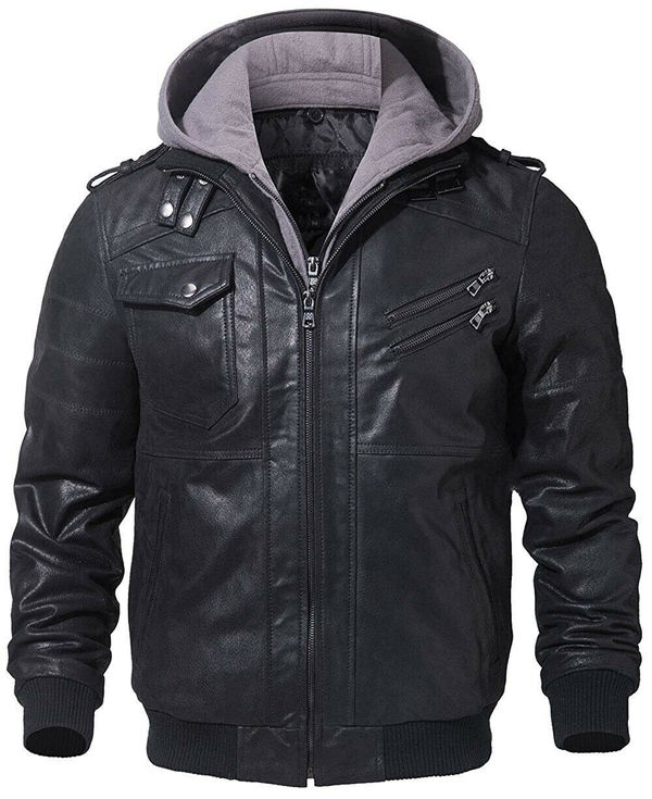 Handmade Men's Aviator Fur Collar Distressed Removable Leather Hood