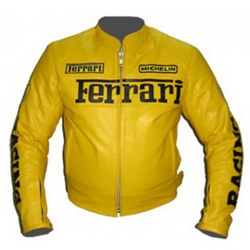 Handmade Men's Yellow Ferrari Motorcycle Leather Jacket