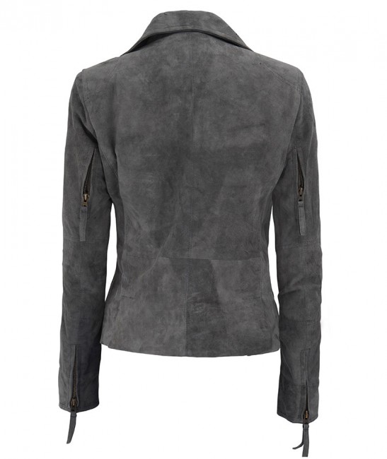 This Womens Biker Grey Suede Leather jacket is exclusively designed with a asymmetrical zip-up lapel, and solid stitching. Made of 100% real leather, the first class design makes you slenderize and charming appearance in a second. It will definitely be your favorite. Features: 100% Suede Leather Leather. Internal full lined with skin-friendly viscose. Asymmetrical collar with smooth zip YKK closure. Solid grey color for a trendy appearance. Check measurements via size chart for better fit.