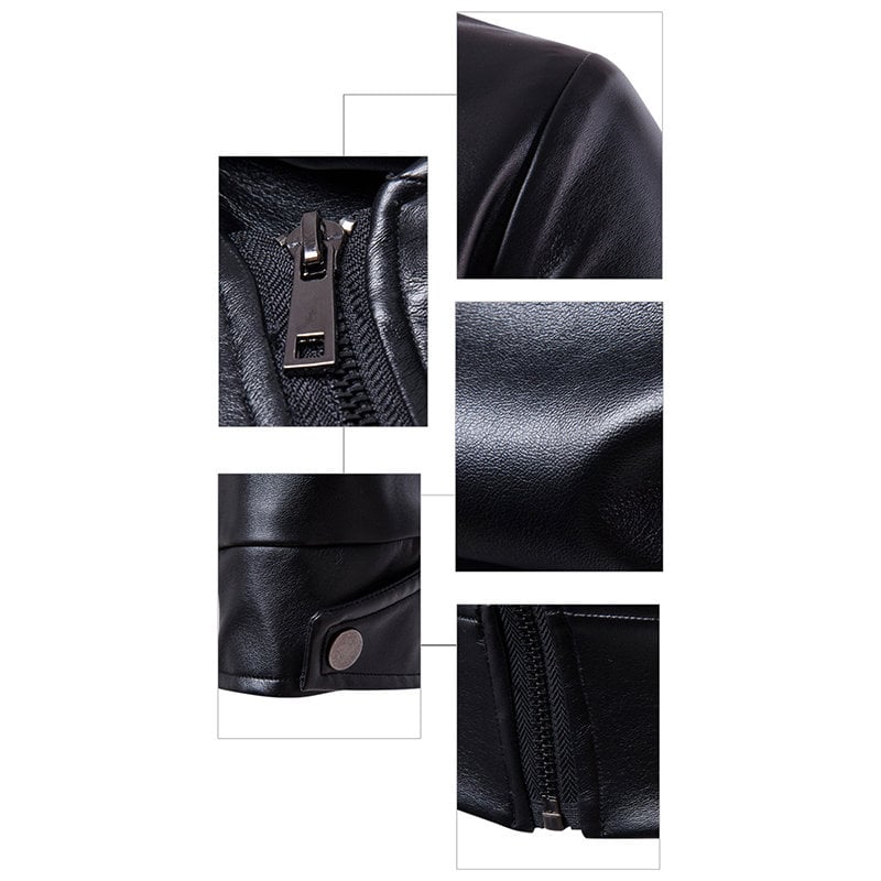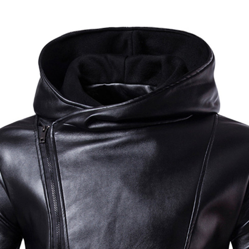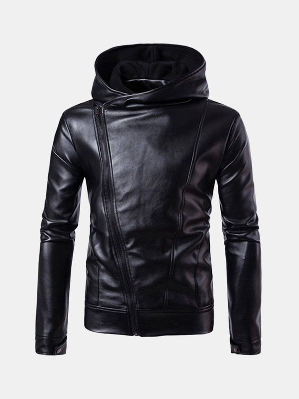 Handmade Men's Biker PU Leather Diagonal Zipper Casual Jacket