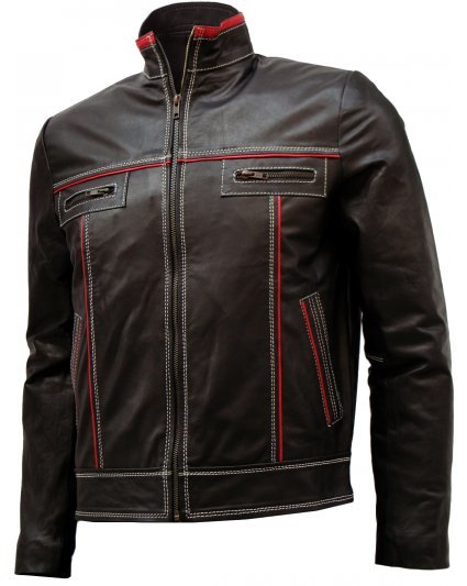 Handmade Men's Double Stitched Leather Jacket (Brown)