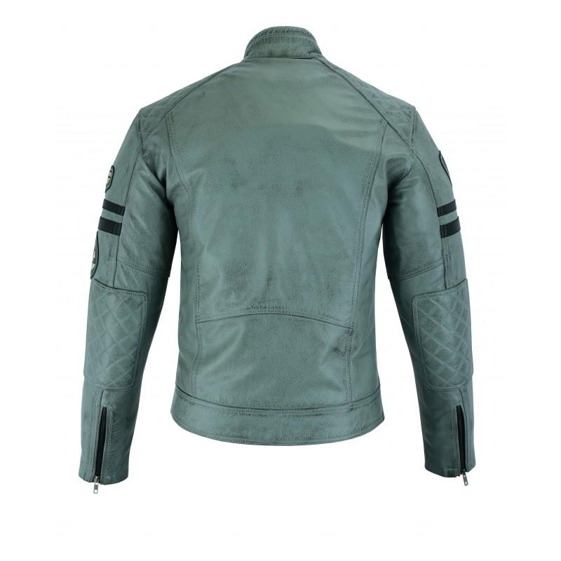 This is a stylish and sleek biker leather jacket perfect for bikers and casual wear. Made from 100% real leather in a classic grey shade. The black zippers and leather bands on the arms contrast well with the grey tone. With classic badges stitched on the front and both sleeves of the jacket. For a retro look we have designed the jacket with the classic cross stitch design on the shoulders.