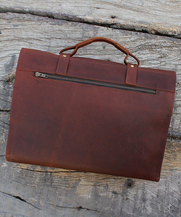 Back side zipper pocket for keeping writing pad or tablet.