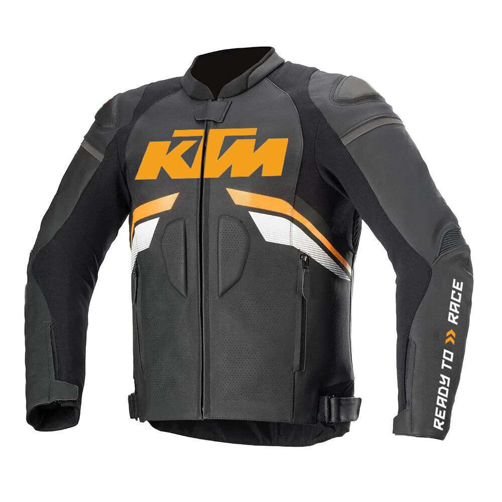 Handmade Men’s Leather Jacket (KTM Black & Orange/Yellow)
