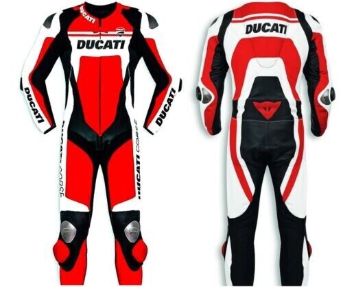 Handmade Men or Women's Leather Motorcycle Two Piece Suit (Ducati - Customizable 1&2 Piece)