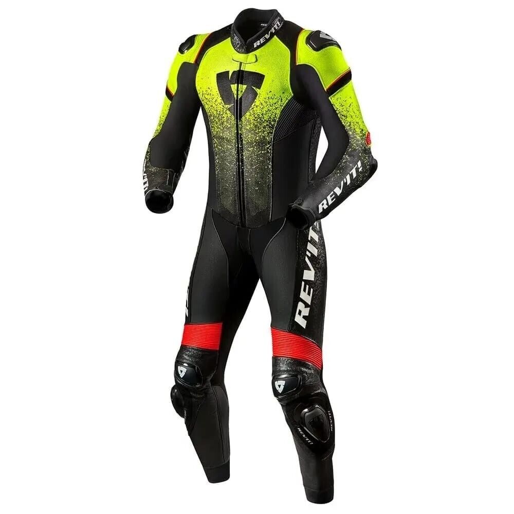 Handmade Revit Motorbike Racing Cowhide Leather Suit (Black & Green)