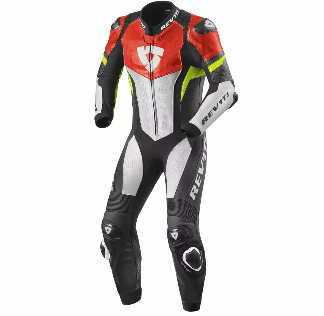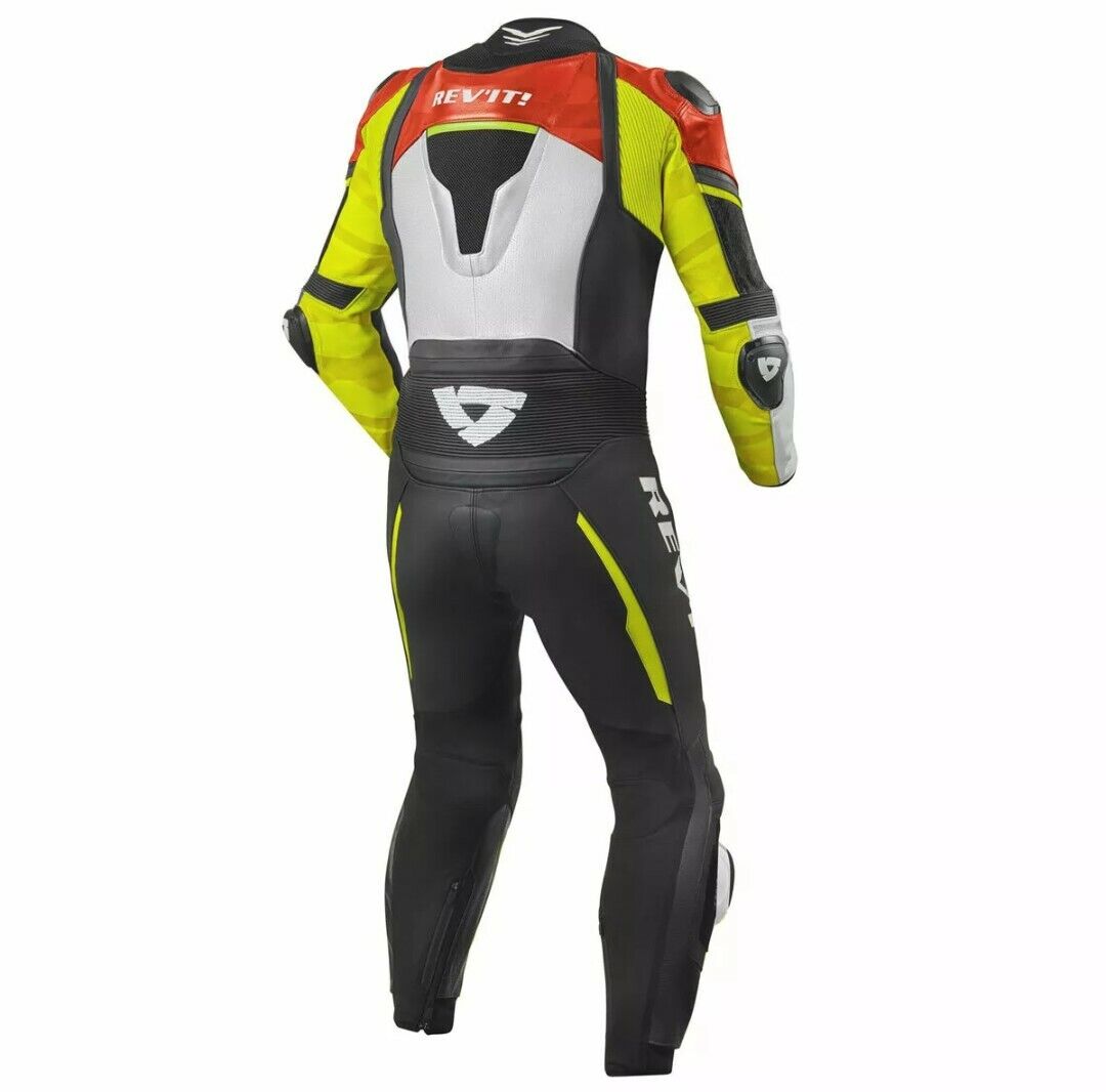 Handmade Revit Motorbike Racing Cowhide Leather Suit (Orange Green & Grey)